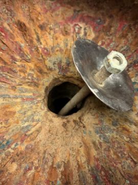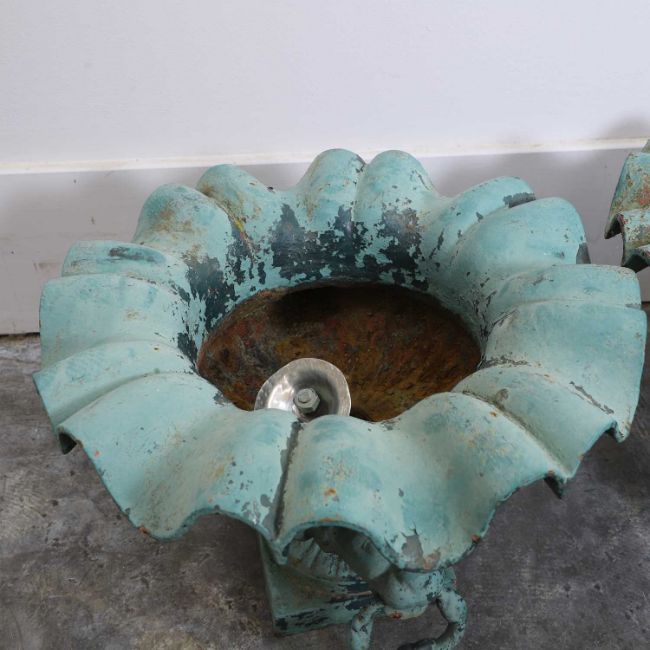 Condition Report: it does appear that there are original bolt fixings present, or a type of similar age and patination, when the washers are removed there are not any unsighlty damages but it is obvious that one urn has suffered more pitting than the other.