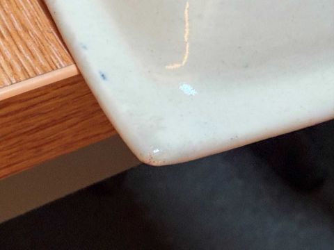 In good order. With minor surface wear and imperfections to the foot rim. Some nibbles along the rim and pitting to the back. Label on the reverse is discoloured.