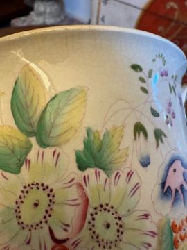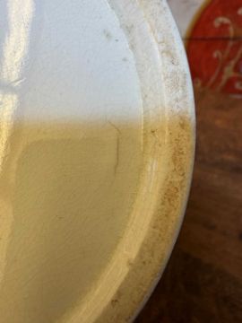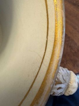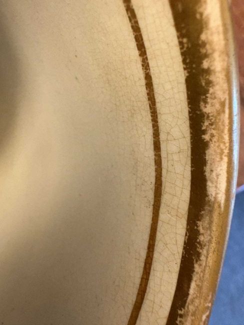 Rubbing to the decoration. With crazing. Hairline crack to the rim. Firing cracks to the base.
