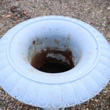 A pair of large French cast iron garden urns,