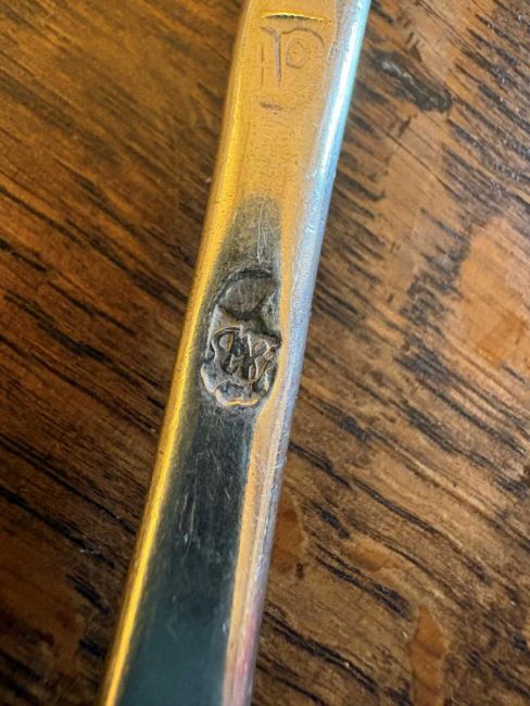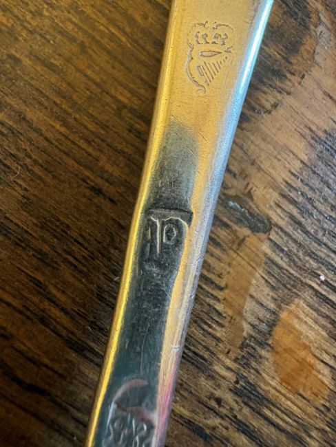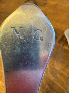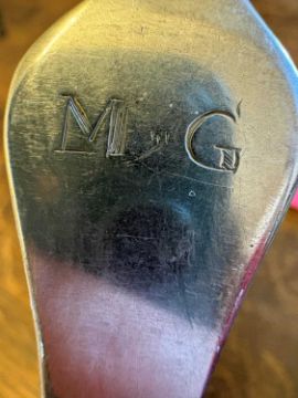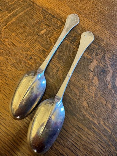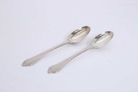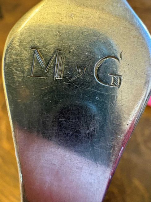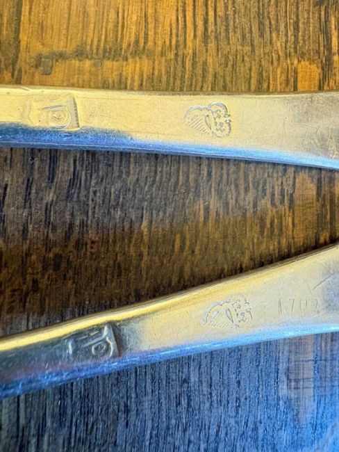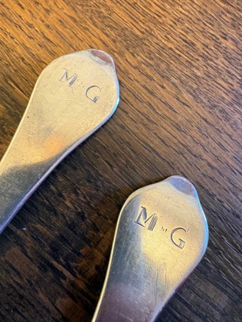 by John Walker, Dublin, 1702, each with a rail tail bowl, monogrammed 'MG'