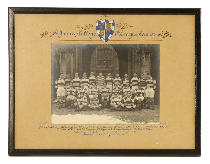 or Piscatory Colloquies and Fishing Excursions in Westmoreland and Cumberland. Longman, Brown, 1857, 1st. Edn. 352pp. (17x11 cm). Cont. Half leather. The Armorial bookplate of 'Sir Thomas Longmore' to front pastedown; 2- The Encyclopaedia of Sport, in 2 Vols. Lawrence & Bullen, 1897, 1st. Edn. 4to. With numerous plates. VG; 3- Beckford Peter, G, D Armour (ill): Thoughts on Hunting. [1911], 1st. Edn. 4to. Original gilt pictorial boards; 4- Three sporting photos: 1- Cambridge University Rifle Association, 1947. Mounted, framed & glazed, with the names of the team and their College, including TRW Longmore; 2- St. John's College, 1st. Cup Rugger, 1945-46. Mounted, framed & glazed, with the names of the team, including TR Longmore; 3- St. John's College, 1st. 1st. League team, 1946-47. Mounted, framed & glazed, with the names of the team, including R Longmore. (7)