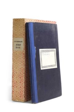 tipped-in 19th. Century cuttings. Leather binding, worn and torn. With Edward Bawden's bookplate to front pastedown. Housed in a fold over marbled card cover with ties; 2- A scrap album with 85 pages containing 170 tipped-in cuttings of illustrations by Charles Keene (1861-63) and John E. Millais (1860-64), each with a handwritten caption giving the Artist, Date, & where taken from (Cornhill magazine, Once a week, Good Words, London Society & the Argosy). 4to. Accounts book. (2)
