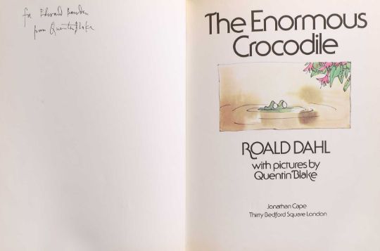 1- Mister Magnolia. 1980, 1st. Edn. Front pastedown Inscribed: 'for Edward Bawden with best wishes from Quentin Blake, March 1980'. VG; 2- Snuff. 1975 repr. Front Blank endpaper inscribed: 'For Edward Bawden, from Quentin Blake'; 3- Roald Dahl: The Enormous Crocodile. 1978, repr. Front Blank endpaper inscribed: 'For Edward Bawden, from Quentin Blake'. All three very good copies. (3)