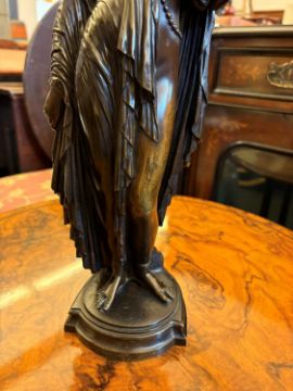 Some scratches and wear to the figure. Minor nibbles to the sculpture. Rubbing to the bronze. The base is plaster-filled. Unsigned.