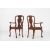each pierced back with foliate carving and a fiddle-shaped splat, with open arms and a leather drop-in seat, raised on cabriole supports terminating in claw and ball feet