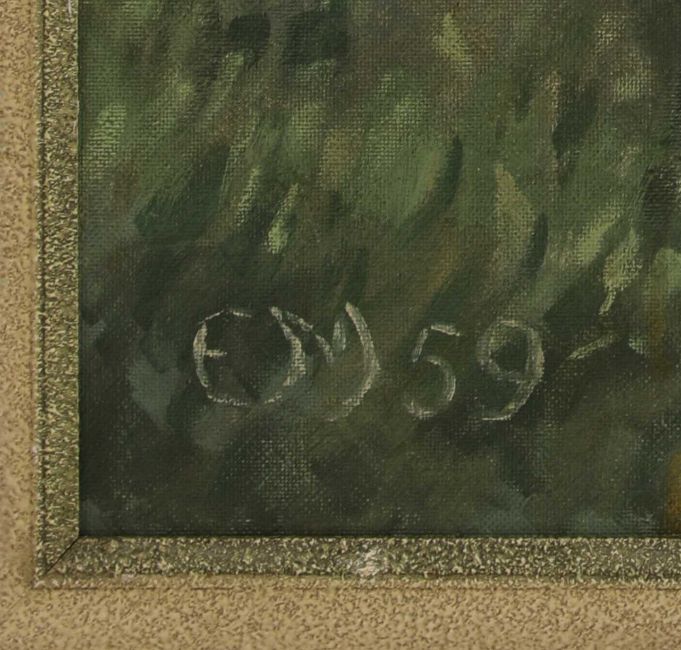 Edward M..., 20th century Study of David Spenceley, Gamekeeper signed with initials and dated '59 l.l., indistinctly signed and inscribed verso, oil on canvas board 65 x 46cm