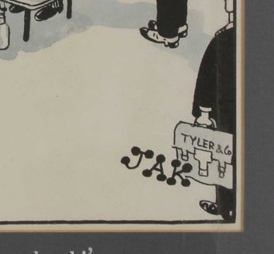 *'Jak' (Raymond Allen Jackson) (1927-1997) 'A couple of days ago we'd have sent out to McDonald's for a boardroom lunch' cartoon 44 x 55cm Provenance: The property of a West Country Gentleman. *Artist's Resale Right may apply to this lot.