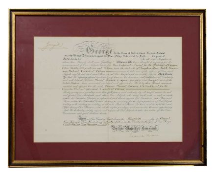 George V Signed: Appointment of Terence Vincent Brenan consul resident in Tehran, Iran. Aug. 14, 1935. Signed George IV, with blind stamp. With seal, mounted framed & glazed.