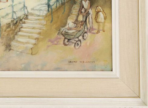 signed 'IRENE WELBURN' l.r., also signed and inscribed with title verso, oil on board