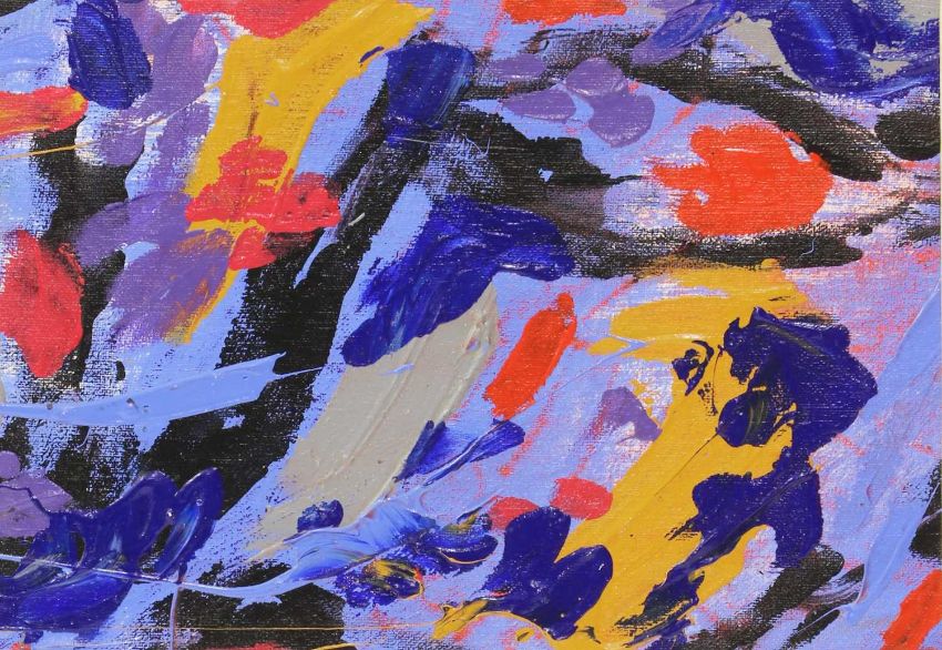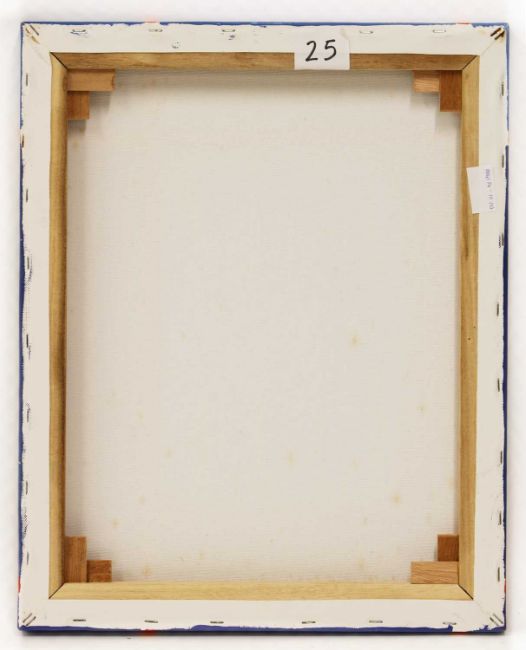 Diptych is two canvases stuck down onto a stretched canvas. Minor losses, but overall in good condition, see images for further details.