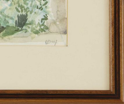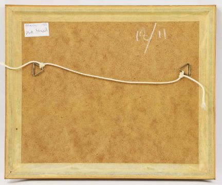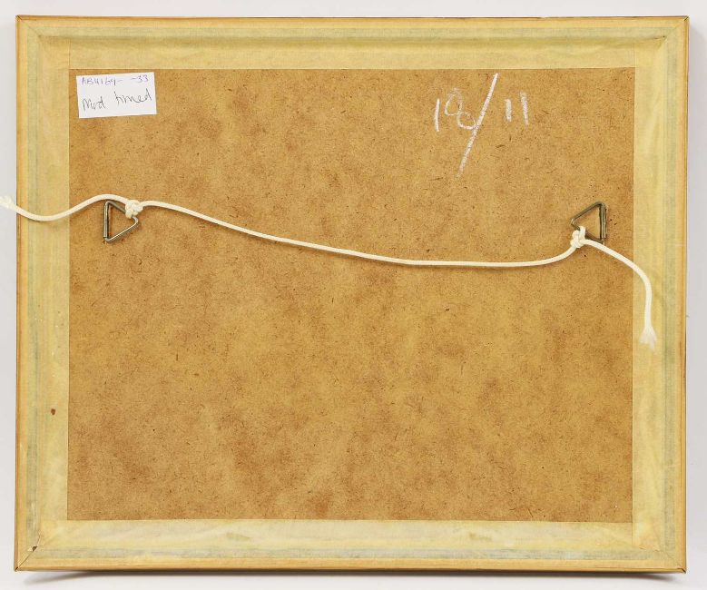 Framed: 27.8 x 33cm in glazed frame. In good condition.