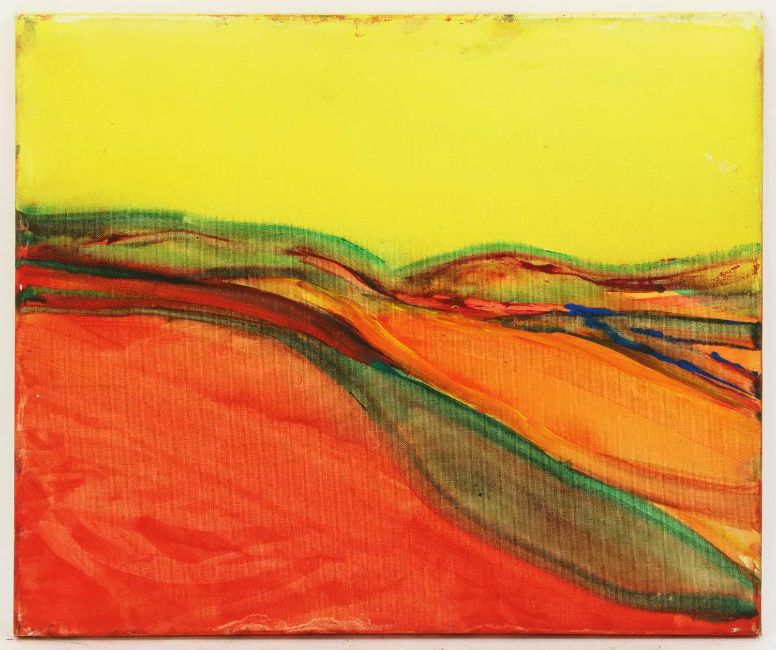 Unframed. A couple of marks in yellow area along top, possibly from artist handling the work, overall, in original condition.