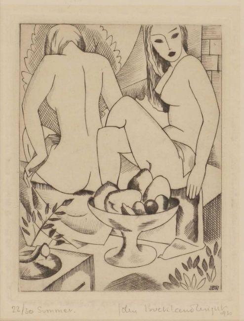 copper engraving, signed in plate 'JBW' l.r., numbered '22/30' and titled 'Summer' l.l., signed and dated '1930' l.r., edition of 30