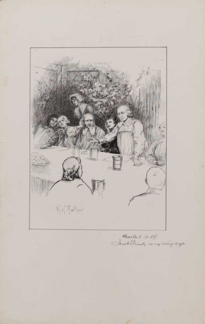 MATHER, R H: Twelve, each signed, pen & ink on card Ref: Charles I, (20 x 15; & 18 x 13cm). (12)