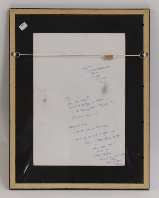 signed and dated 'Charles Bronson/XMAS 2.005' l.r., inscribed 'For my Old Buddy Joe.../2006 A Winner Dad x/I'm On My Way Home!' l.c., with a letter to Joe Pyle verso, pen and crayon