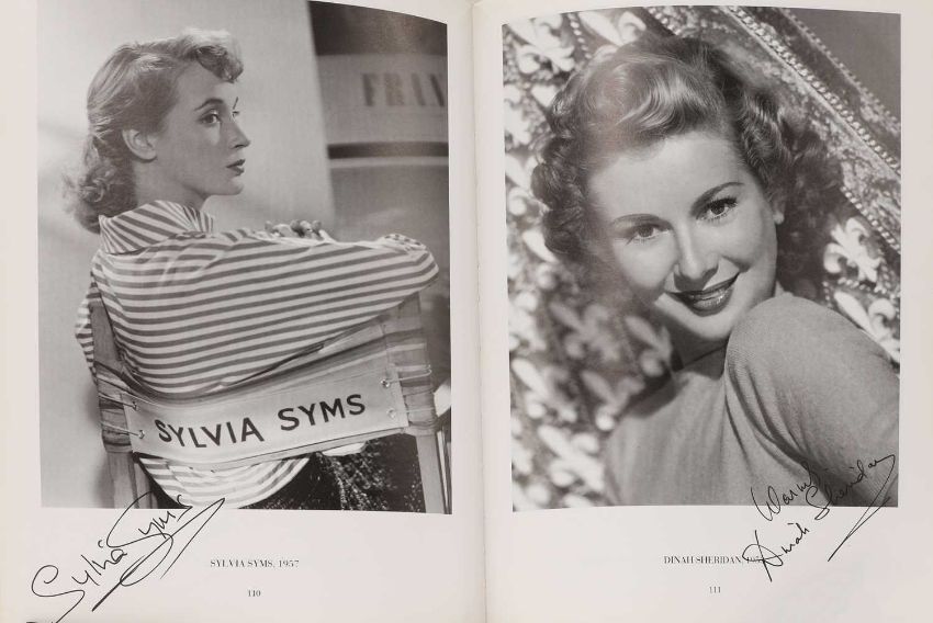 BRITISH CINEMA, with 59 SIGNATURES: John Russell Taylor & Kobal John: Portraits of the British Cinema: 60 Glorious Years, 1925-85; 1985, 1st. Edn. DW, SIGNED BY 59 OF THE TOP BRITISH ACTORS of the period on their respective photograph, Including: JAMES FOX; JOHN GUILGUD; MAUREEN O'HARA; STEWART GRANGER; PETULA CLARK; ALEC GUINNESS; PETER USTINOV; AUDREY HEPBURN; JULIE ANDREWS; CLAIRE BLOOM; JOHN MILLS; DIRK BOGARDE; RICHARD ATTENBOROUGH; SYLVIA SYMS; REX HARRISON; VIRGINIA McKENNA; RITA TUSHINGHAM; PETER O'TOOLE; JOHN HURT; ALBERT FINNEY; SUSANNAH YORK; JULIE CHRISTIE; SARAH MILES; ALAN BATES; GLENDA JACKSON; MICHAEL YORK; MICHAEL CAINE; VANESSA REDGRAVE; MAGGIE SMITH; ROGER MOORE; DAVID ESSEX; HELEN MIRREN; STING; JEREMY IRONS; TOM CONTI; JANE ASHER, 64 Signatures, including duplicates,. FINE