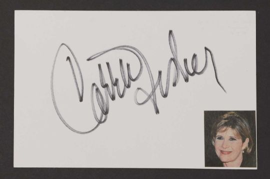 Star Wars: Carrie Fisher autograph on white card, 10.5 x 15cm