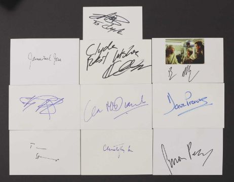 Star Wars: thirty-seven autographs on white card, 10.5 x 15cm, including Ewan McGregor, Hayden Christensen, James Earl Jones, David Prowse, John Boyega (small card), Ian McDiarmid, Ray Park, Simon Pegg, Christopher Lee and Terence Stamp (37)