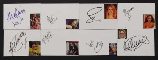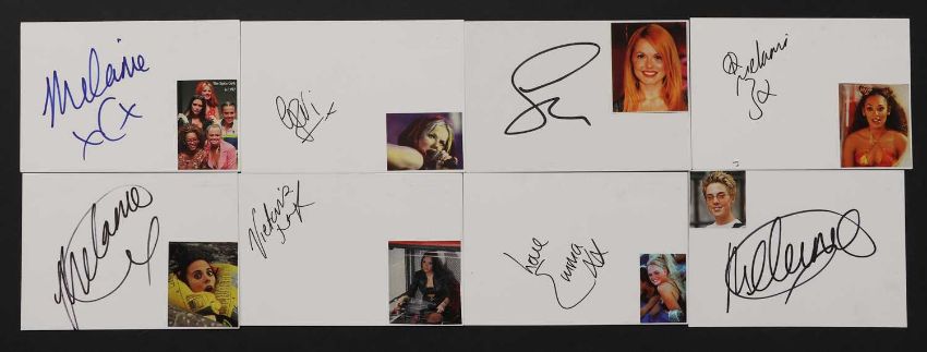 SPICE GIRLS: 40 Signed Items: Comprising SPICE GIRLS, The Movie: A Double Video (Signed By All Five, Also By Simon Shepherd & Richard E Grant); LIVE AT WEMBLEY STADIUM- Video (Signed By 4, not Victoria); SPICE UP YOUR LIFE plus GREATEST HITS (Signed By 4, not Victoria); SPICE plus SAY YOU WILL BE THERE (Mel C, Geri & Emma); SPICE WORLD (Mel B, Mel C & Geri); FOREVER plus TOO MUCH plus WANNABE plus GOODBYE plus VIVA FOREVER (Mel C & Emma); SPICE GIRLS plus VIVA FOREVER (Mel C); MEL B: Hot; MEL C (4): Stages; Northern Star; Reason; Beautiful Intentions (Last Also Signed By Mary McCartney. The Photographer); GERI HALLIWELL (3): Scream If You Wanna Go Faster; Schizophonic (2 Copies); Signed White Cards: VICTORIA (1); EMMA (1); MEL B (3); MEL C (3); GERI (5). PLUS: 4 Unsigned Items: One Documentary Video And 3 CD’s. (qty.)