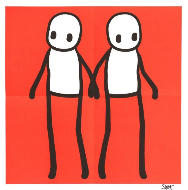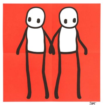 'Holding Hands' in red, orange, yellow, blue and teal