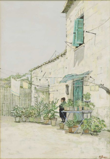 Some small spots and speckles of surface dirt but presents well overall, and is ready to hang. Unexamined under UV light, for a full report please contact the department.