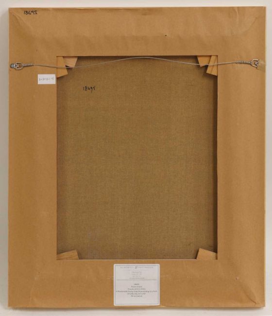 Some surface dirt. A tiny paint loss spot on the top right corner. There is a small white spot near the top edge on the right which appears to be paint, please see images. Rubbing mark to the centre of the bottom edge. Not examined under UV light. For a full report, please contact the department.