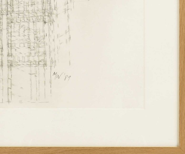 Pencil smudges to the background with some very light handling creases visible on close inspection. Some small brown speckles to the bottom left corner but presents well overall and is ready to hang.