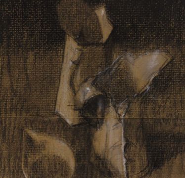 Charcoal, Conté crayon and white chalk, on the reverse of a brown envelope