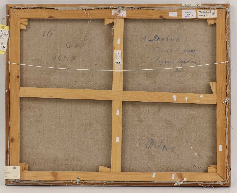 signed in Cyrillic l.r., also signed, inscribed in Cyrillic and dated '63' verso, oil on canvas