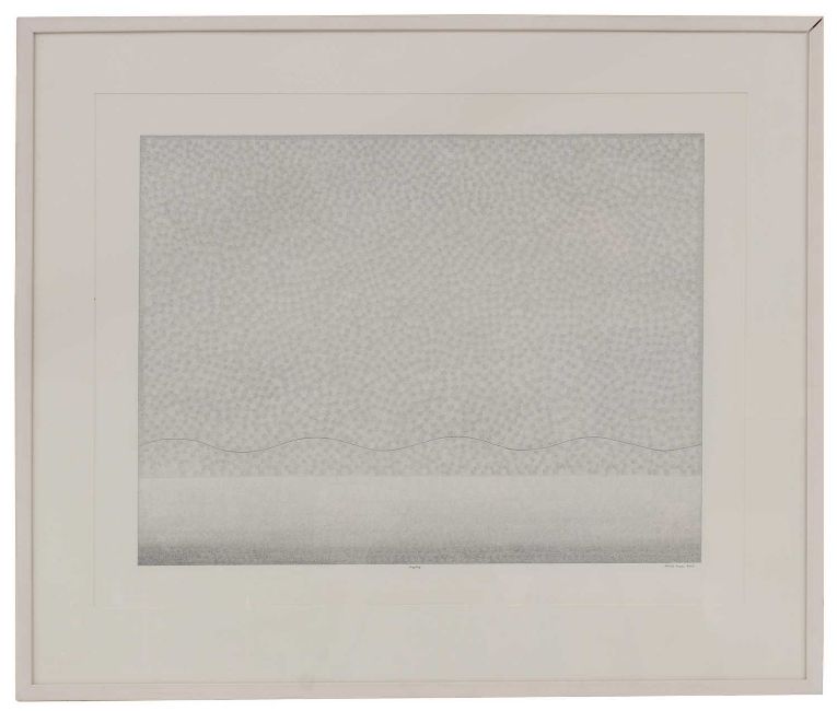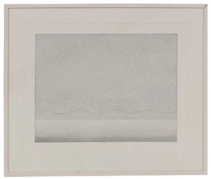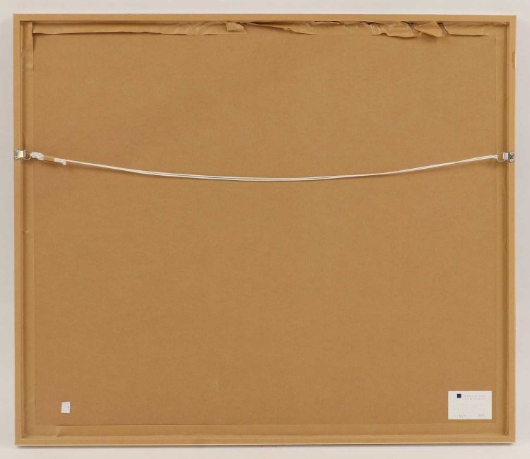 There is a small faint brown mark in the centre of the right margin but the work appears to be in otherwise good condition. Some small specks of dirt and a small bug trapped behind the glazing but the work itself does not appear to be affected. Not viewed out of glazed frame.