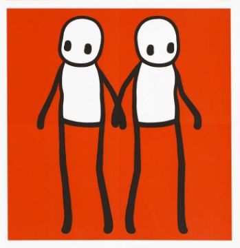 'Holding Hands' in red, orange, yellow, blue and teal