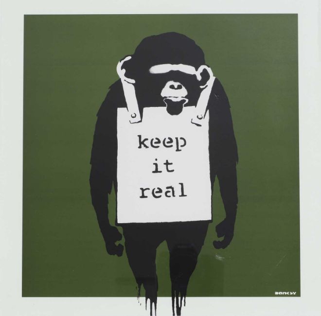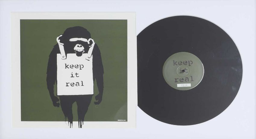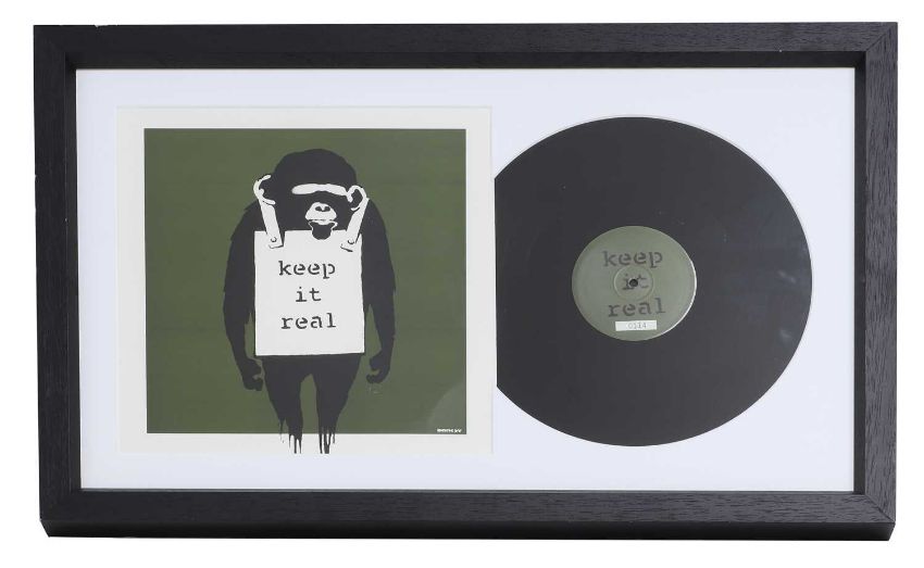The record sleeve has a diagonal crease to the bottom right corner. There are some indentations/ scratches to the green background beneath the monkey's hand on the right side. Not viewed out of glazed framed but presents well overall and is ready to hang.