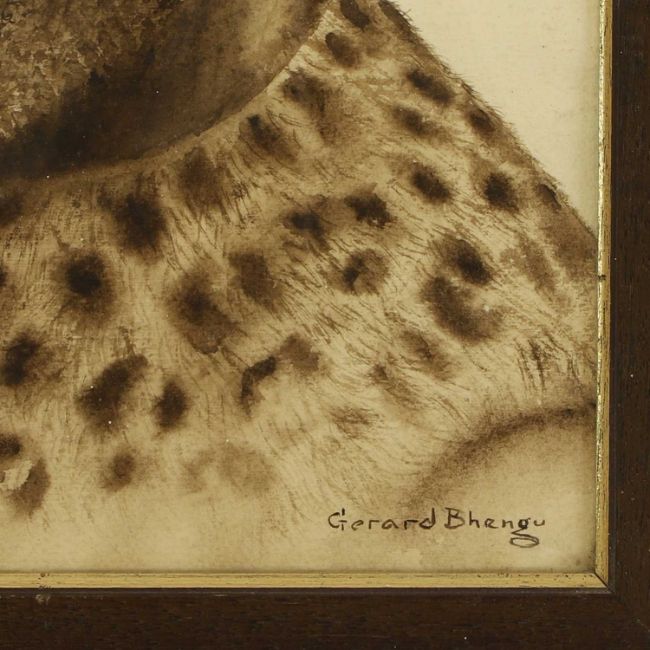 Slight rippling to the right margin to the paper and a few light spots of staining but overall presents well. Not viewed out of the glazed frame.