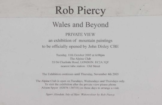 Exhibited: The Alpine Club, London, 'Rob Piercy, Wales and Beyond', 11 October - 4 November 2005.