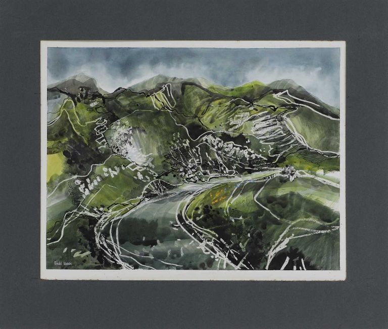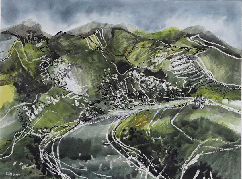signed 'Ronald Maddox' l.l., inscribed with title verso, watercolour with wax resist
