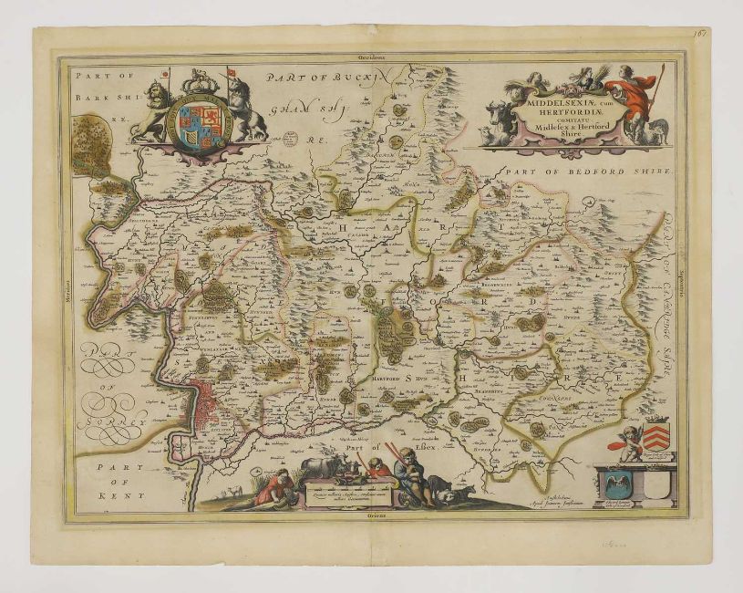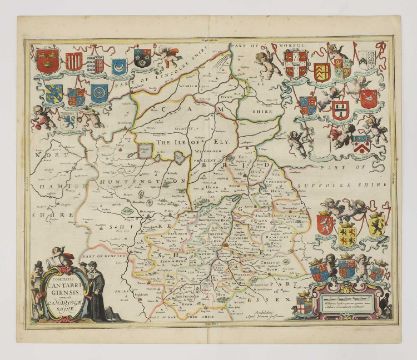 Comitatis Cantabrigiensis vernacule Cambridgeshire, Amsterdam, c.1650. Hand-coloured, 51 x 41cm; Middelsexiae, cum Hertfordiae, Comitatu Midlesex & Hertford Shire. Amsterdam, c.1650. Hand-coloured, 54 x 43cm, with a tear - no loss (2)