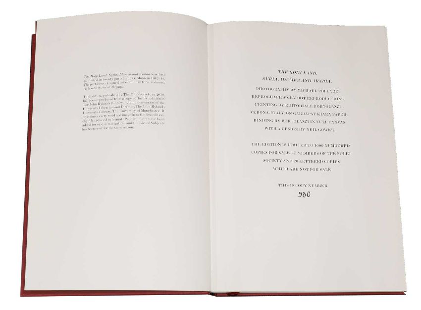 THE HOLY LAND, Syria, Idumea and Arabia. [With] EGYPT AND NUBIA, 2 Volumes. Folio Society, 2010, Limited Edn. number 980/1000, FINE, IN 2 SLIPCASES (2)
