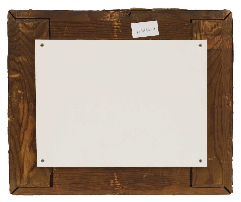 Craquelure. The painting has been relined. Examined under UV light some spots of overpainting are visible to darker areas of the sky and shore. In some areas the weave of the canvas is fluorescing and it is difficult to determine if there is further overpaint due to previous applications of varnish and cleaning. The painting presently has a varnish layer which is clear and glossy. The back of the work is boxed and is not visible.