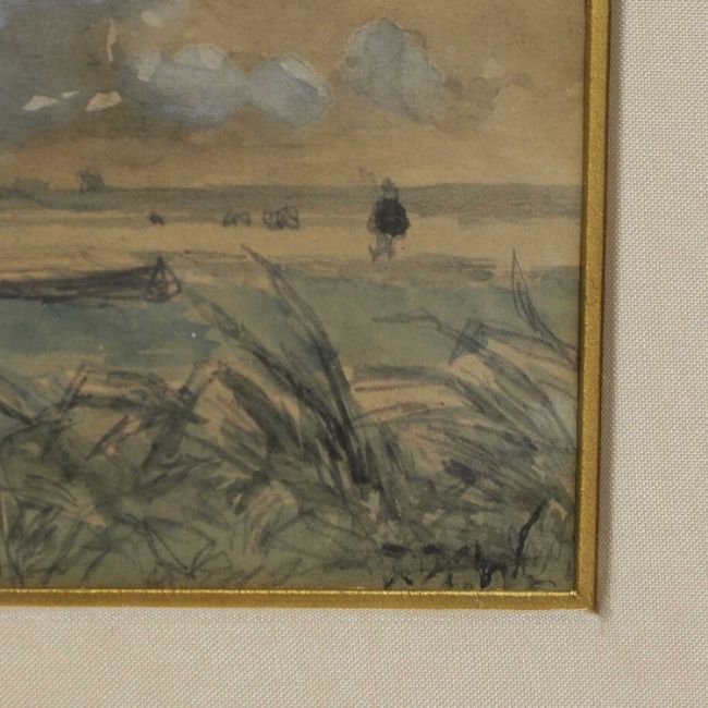 A little rippling to the top edge. Time staining and discolouration, please refer to illustration. Not viewed out of glazed frame.