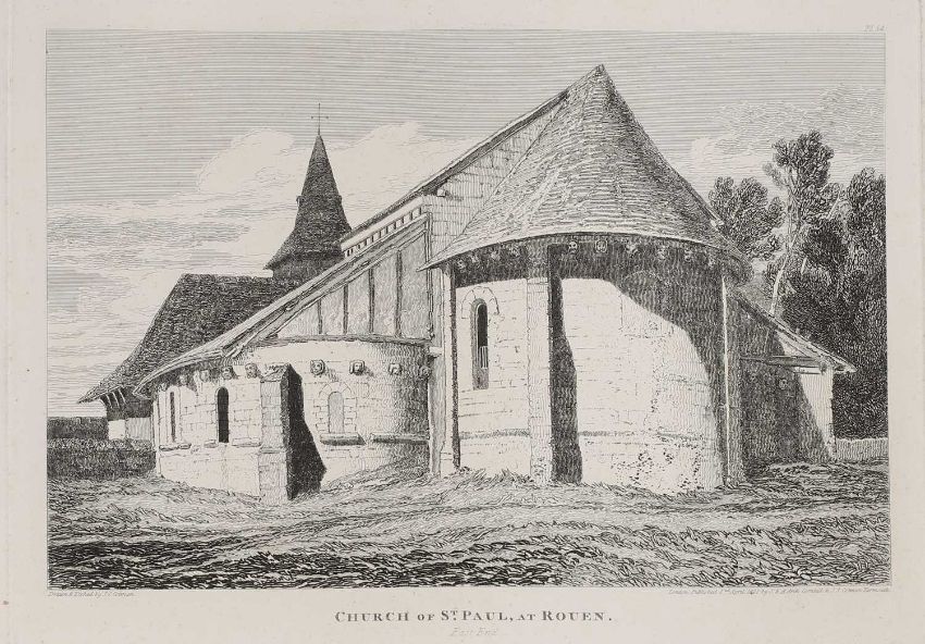 a group of fourteen etchings with engraving, published by J & A Arch, Cornhill, and J S Cotman, Yarmouth, 1821, from 'Architectural Antiquities of Normandy'