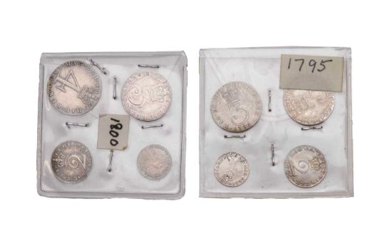 Maundy Set, 1795, all coins VF or better, together with an 1800 Maundy Set, all coins NVF or better