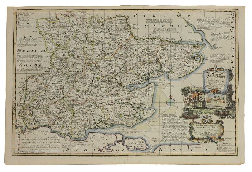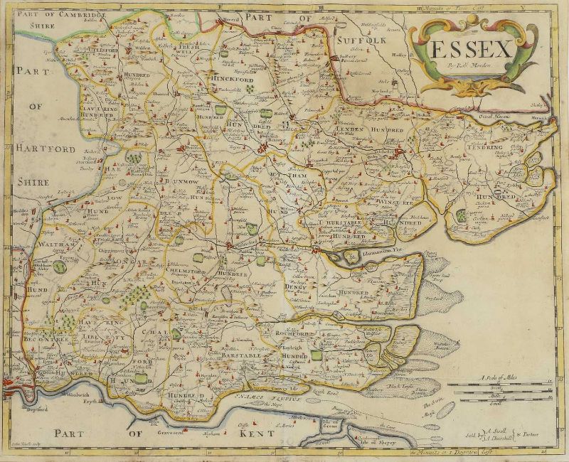 Five Essex: comprising Bowen 53 x 70.5cm, Greenwood 60.5 x 69.5, & two by Morden 41.5 x 33.5cm and another 41.5 x 34.5cm; Plus: a map of Suffolk 41.5 x 34.5cm. (6)