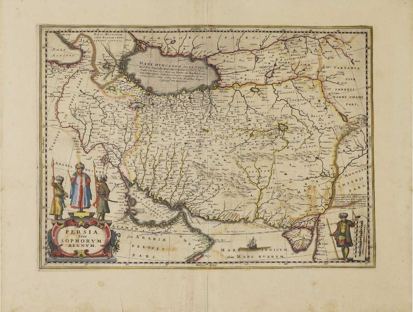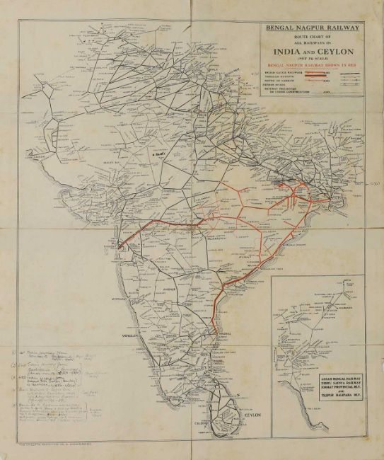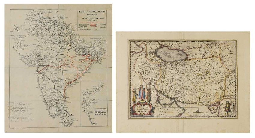 Amsterdam, circa 1635, Hand coloured, double page (tear to fold), 60 x 50 cm; Plus: Bengal Nagpur railway- Route chart of all railways in India & Ceylon. 55 x 45 cm. (2)