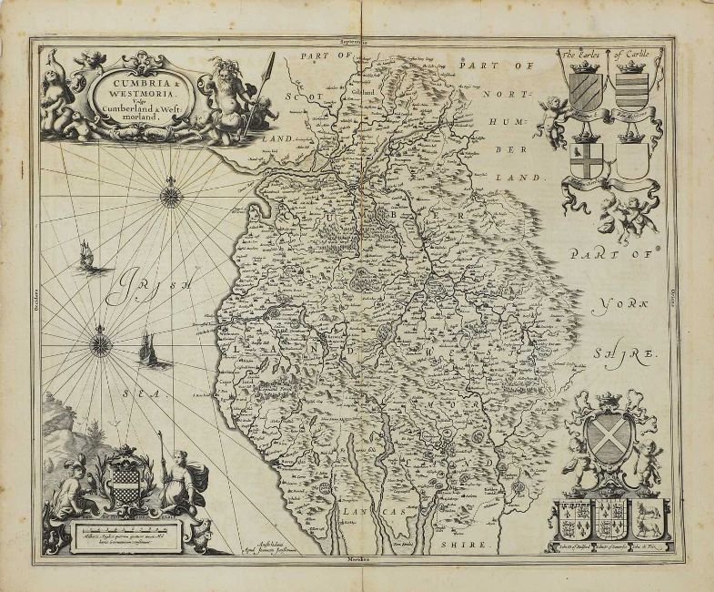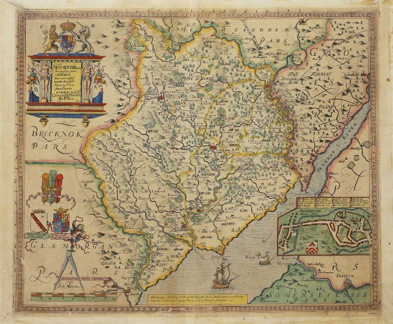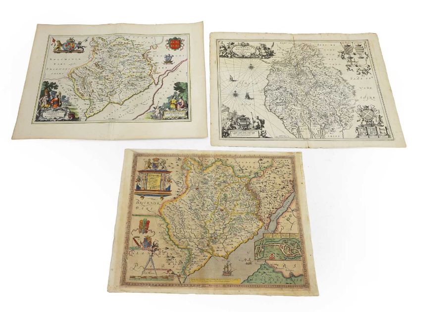 Vernacule Monmouth Shire. Ca1643, hand coloured. 60 x 50 cm; 2- Monmouthshire, heretofore part of Wales.. Hand coloured, 54 x 43 cm; 3- Cumbria west moria vulge Cumberland & west-Morland. Nd, 60 x 49 cm. (3)