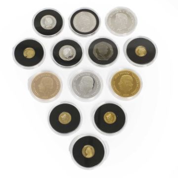 a selection of coins comprising The 200th Anniversary of Queen Victoria Solid Gold Coin Collection, The 75th Anniversary of VE Day Fine Silver Proof Coin, a Proof Sterling Silver 'Penny Black' 50p Coin, The Queen Elizabeth II Memorial £5 Coin Collection and The 2019 400th Anniversary Solid Silver Proof Laurel Coin Collection