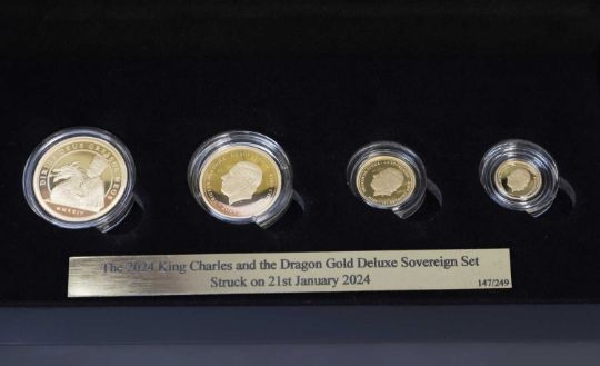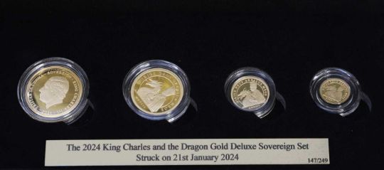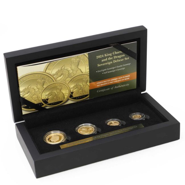 2024 King Charles III and the Dragon Sovereign Deluxe Set, from Sovereign to One Eighth Sovereign, in capsules with certificates