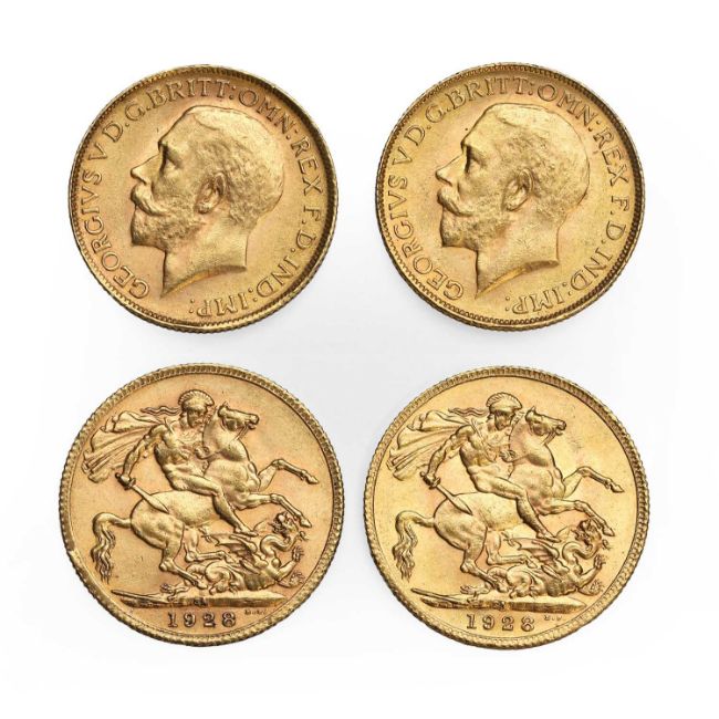 Sovereign, 1928, SA in ground for Pretoria Mint, F or better, together with another from the same year, also F or better