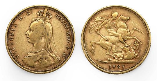 Sovereign, 1887, S in ground for Sydney Mint, NF