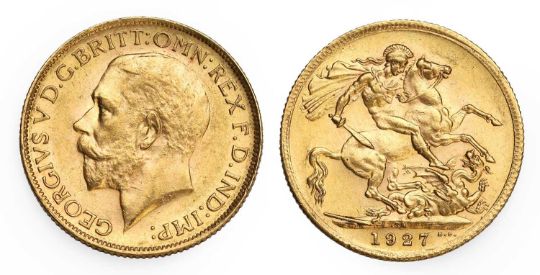 Sovereign, 1927, SA in ground for Pretoria Mint, VF